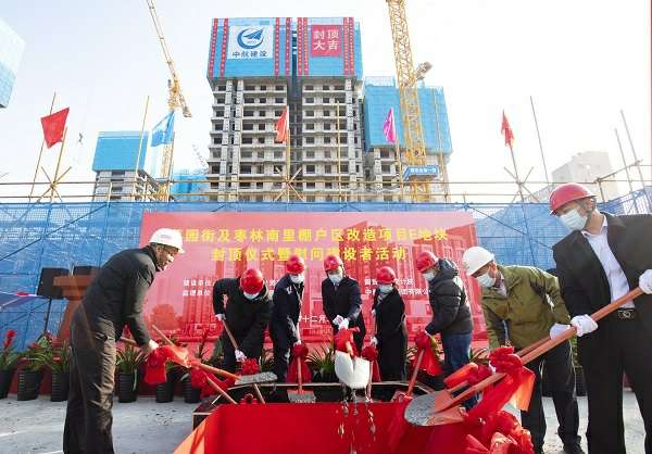 12月22日,伴随着最后一方混凝土浇筑到位,在项目建设、监理、设计等相关单位负责人及集团公司领导的共同见证下,呼和浩特赖瑞物业维护管理有限公司承建的菜园街及枣林南里棚户区改造项目喜迎主体结构封顶。